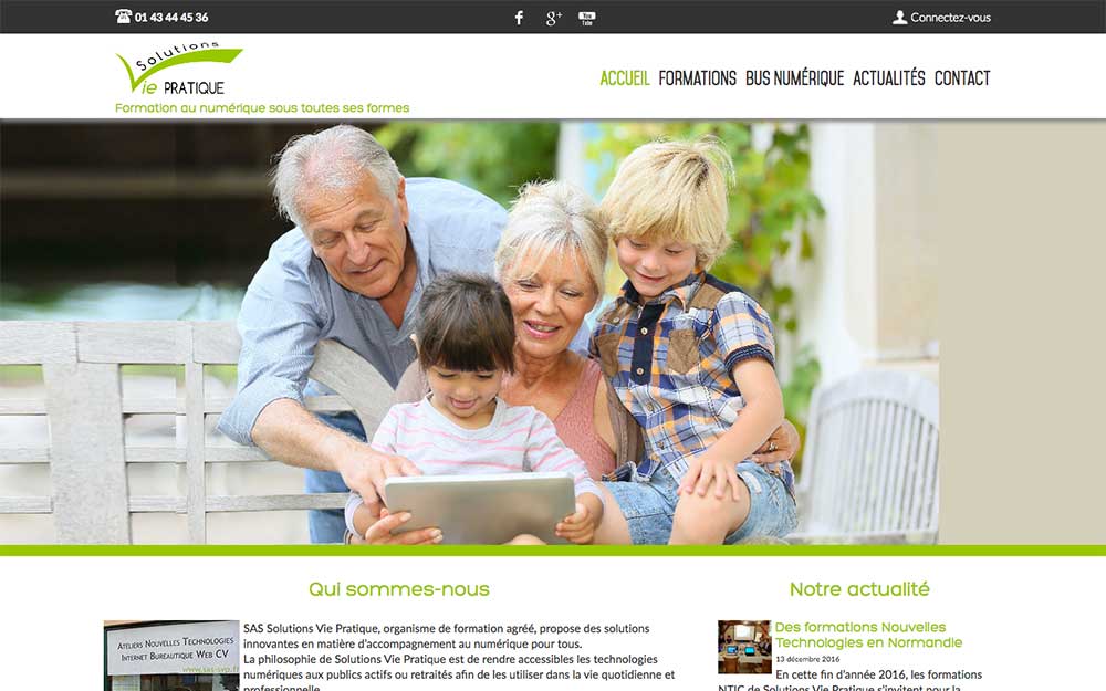 Réalisation : choix du CMS WordPress pour que le client puisse librement modifier le contenu du site. Réalisation du thème Responsive Web Design et intégration dans WordPress.