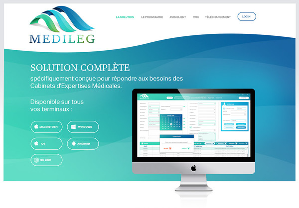 Design du logo puis de l'interface de l'application de gestion pour cabinets d'expertise médicale.