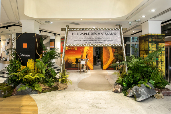 Stand pour la boutique Orange Opéra dans le 9ème. Sur le thème du Roi Lion. Façade plus une autre pièce avec 3 panneaux en tissu de 6 mètre que j'ai du monter en exe (je n'ai pas fait la créa).