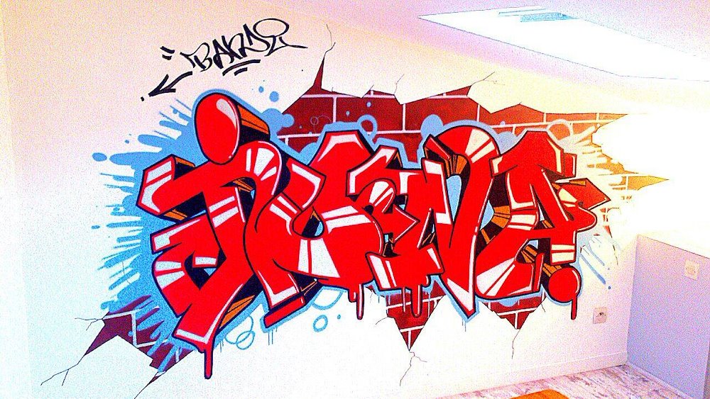 Graffiti réalisé pour la décoration de la chambre d’un adolescent.