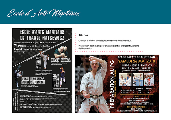Création de diverses affiches pour des cours ou des stages au sein d'une École d'Arts Martiaux.