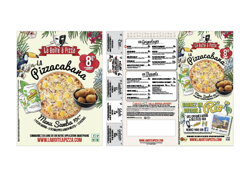 Flyer et affiche pour la campagne pizza cabana de la Boîte à Pizza