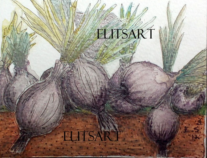 "Oignons"ELITSART 2017 - dessin en crayons aquarelles, feutres noir et blanc sur papier.