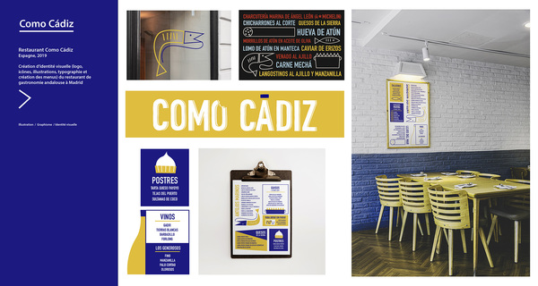 Création d'identité visuelle (logo, icônes, illustrations, typographie) et création de menus du restaurant de gastronomie andalouse à Madrid